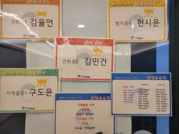 25년도 마지막 정기평가 결과입니다 비교적 쉬운 시험이었다고는 하나 그래도 100점은 쉽지않죠^^ 100점 친구 그동안 열심히 해주어 기특합니다 또한 이번 기파랑 문해원 졸업시험에서도 가재울초6 노0우 학생이 수능 1등급으로 영예로운 점수를 획득했습니다 선랑부터 시작하여 꾸준하게 실력을 향상시킨 대견한 친구들 칭찬합니다 가끔 입학테스트를 보고 난 후 학부모님들께서 시험지를 볼 수 없는지 요청하실 때가 있습니다. 정기평가가 곧 입학시험지로 활용되기때문에 외부에 공개될 수 없는 점 양해부탁드립니다 <img src="https://blogthumb.pstatic.net/MjAyNjAxMDhfMTEg/MDAxNzY3ODU2OTg2ODA4.rzvf3C1XnnBK66ncjVwoGjcu_ZFEeUpBnsRQ8p4j_Cwg.FT6ci1qtqXaKrEdNjU030S7eqm07NpU3we2e8SxFhn4g.JPEG/900%A3%DF20260108%A3%DF134658.jpg?type=s3" />