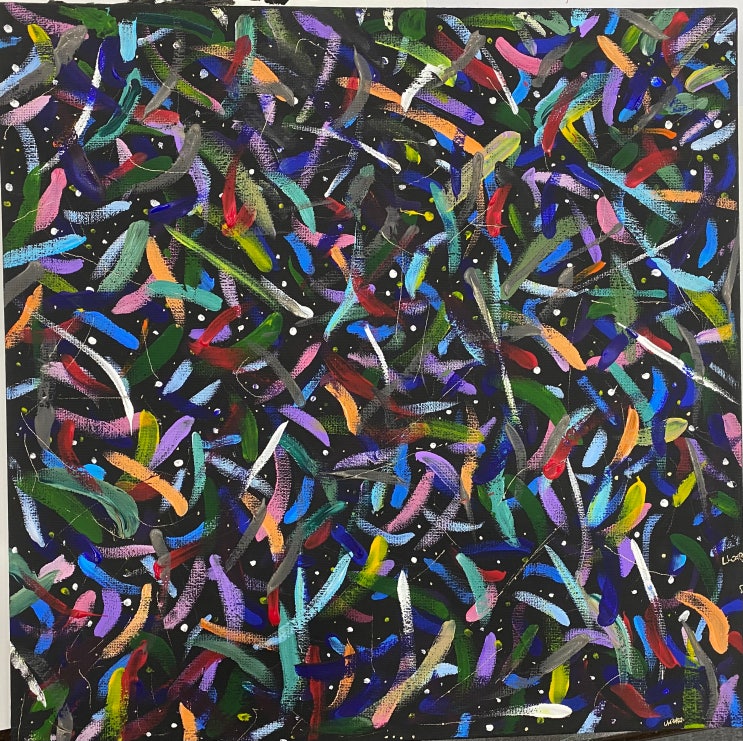 검은 캔버스 위로 터져 나온 13살의 에너지! 초6 남학생의 '아크릴 추상화' | 군산 브니엘미술학원