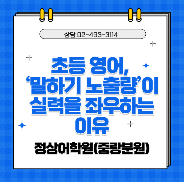 안녕하세요. 중화동초등영어학원 정상어학원 중랑분원입니다. 초등 영어 학습에서 가장 자주 듣는 질문 중 하나는 “단어도 외우고, 문법도 배우는데 왜 말은 잘 안 늘까요?”입니다. 이 질문의 핵심에는 바로 ‘말하기 노출량’이라는 중요한 요소가 숨어 있습니다. 초등 영어 실력은 얼마나 많은 문제를 풀었느냐보다, 얼마나 자주 영어를 듣고, 말해봤느냐에 따라 크게 달라집니다. 초등 시기의 아이들은 아직 언어를 ‘지식’으로 받아들이기보다 소리와 상황으로 흡수하는 단계에 가깝습니다. 이 시기에 영어를 글자 위주로만 접하면 머릿속에 단어와 규칙은 쌓이지만, 입으로 자연스럽게 나오는 영어는 쉽게 만들어지지 않습니다. 말하기 실....... <img src="https://blogthumb.pstatic.net/MjAyNjAxMjZfMTYx/MDAxNzY5Mzk3MTk4OTc3.kz_MBHPxGycM5h3nbfyQQyTEdNLn6IixvgKD9MIXSyog.tKSJQAn7H36WlTC9VLoCTAR3qw9NnOK2NHZm7aOyTgYg.PNG/image.png?type=s3" />
