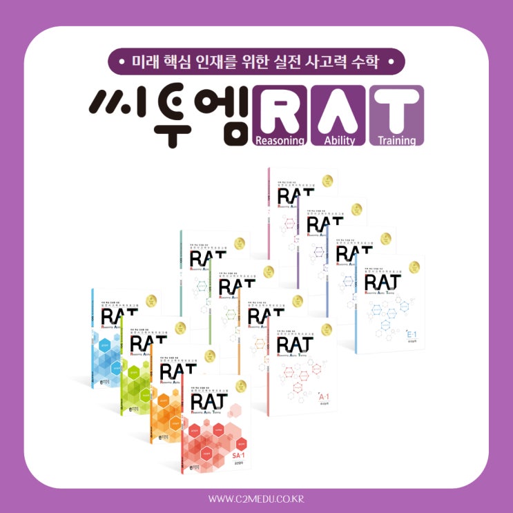 안녕하세요~ 서서히 추위가 풀리고 있는 요즘, 우리 아이들은 방학 알차게 보내고 있나요~?ㅎㅎ 오늘은 지면 사고력 교재인, RAT 에 대해 이야기를 나눠보려 합니다! 아이들은 수학 문제를 풀 때 조금만 어려워지면 바로 포기해버리는 경우가 많습니다. 정답을 맞혔어도, 왜 그렇게 풀었는지는 설명하지 못하는 경우가 많죠! 그래서 필요한 것이 바로, '사고하는 힘' 입니다 :) ▼▼▼▼ [최상위를 향한 실전형 사고력 프로그램, 씨투엠 RAT] 씨투엠 RAT는 단순히 문제를 많이 푸는 교재가 아닙니다! ☞ 문제 앞에서 멈추지 않고 ☞ 스스로 충분히 생각하며 ☞ 해결한 뒤에도 사고를 확장하는 실전형 사고력 교재입니다! [씨투엠 RAT 의....... <img src="https://blogthumb.pstatic.net/MjAyNjAyMDJfMjc5/MDAxNzcwMDA0MzM4MjQ4.F0AkjGL-FC6vxOuZ1pRwUAukj5X8yY8CQ03HBAuDMnog.9d4B3ga-Fe9nhc9pIF-ZYchrLY-vw8rFc6ePOSe_UG4g.JPEG/KakaoTalk_20260122_134308356.jpg?type=s3" />