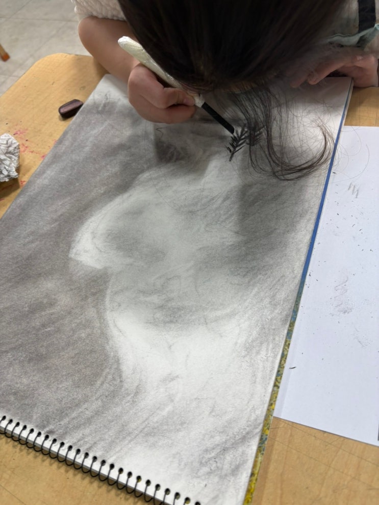 목탄으로 풍경화 그리기 망원동 네모미술 초등학교 고학년 아이들은 재료:목탄 풍경 그리기 자연물 자세히 묘사하기 집중하는 모습 정말 이쁘다~~^^ 나무를 한땀한땀 그려주고 있는 아이 크로키를 너무 너무 잘 하는 아이! 최고!!! 꼼꼼한 친구라 아직 그림이 진행중인데 아직 진행 중이지만 너무 잘 하고 있다아!!! 닭 묘사 하기!! 닭 깃털도 하나하나 묘사 해 주고 있는.... 기분탓인지 뭔가 닭이 엄청 세보인다..ㅋㅋㅋㅋ 친구 닭 들이 위험에 처해있어서.. 거기 도와주러 가는 중... 인듯 한 닭의 모습 ㅋㅋ 이 닭은 왠지 닭 깃털에 총 한자루 있을것 같은 느낌 ㅋㅋㅋ 네모미술은 주2회 (월8회) *매주 1회 그리기 1회 만들기 *수업 시간은 한....... <img src="https://blogthumb.pstatic.net/MjAyNjAxMTVfMjYw/MDAxNzY4NDIxNDQzNzM0.HloklikT_pv_TiG4PUOKxd5gIRlPjd8WqIjI4yPdHLcg.0l4dQ7LOKTM0I0Wi1_bEMCtz-m6w78mwOLn0dp_oR4kg.JPEG/IMG%A3%DF5113.jpg?type=s3" />