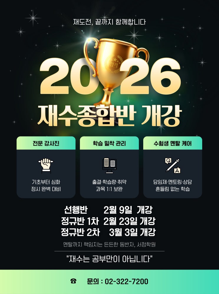 [홍대 서정학원] 2027학년도 선행반 & 재수종합반 개강안내