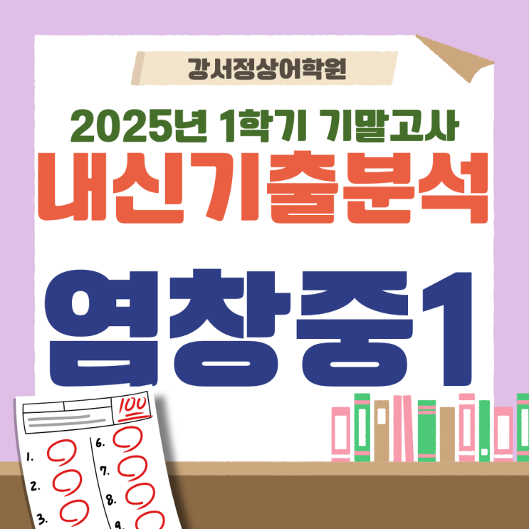 [강서영어학원] 25년 1학기 기말고사 염창학교 1학년 내신 기출분석