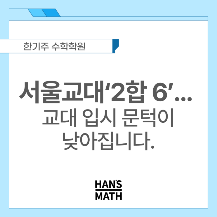 [한기주 수학] 서울교대 ‘2합 6’… 교대 입시 문턱이 낮아집니다