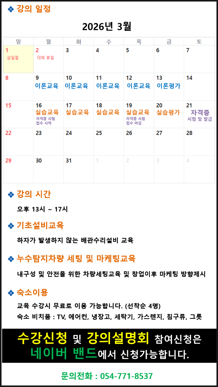 2026년 3월 누수탐지 전문가 창업교육 일정안내