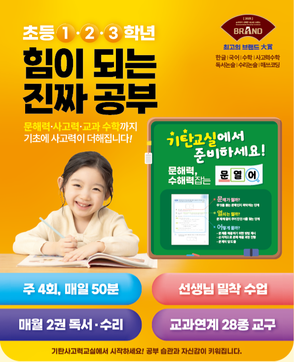 교육패러다임에 맞춘 기탄사고력교실, 유치6.7세-초등학습전학년 기초부터 관리합니다.