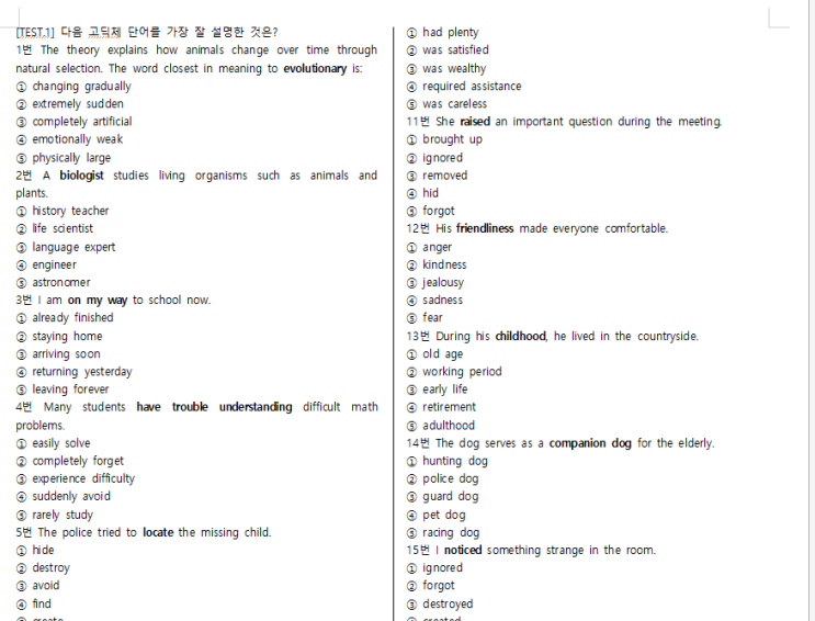 [심상민영어]공통영어1 미래엔(김)1과 본문단어 암기및 TEST