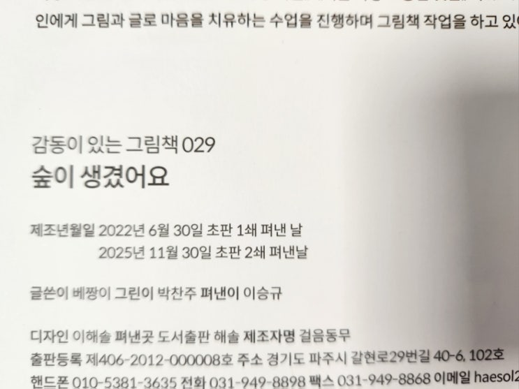 〈숲이 생겼어요〉 2쇄를 축하하며