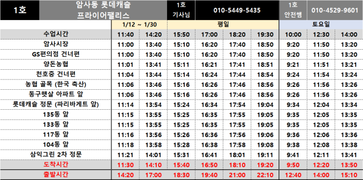 [공지] 구주이배 1월 셔틀버스 운행 시간표