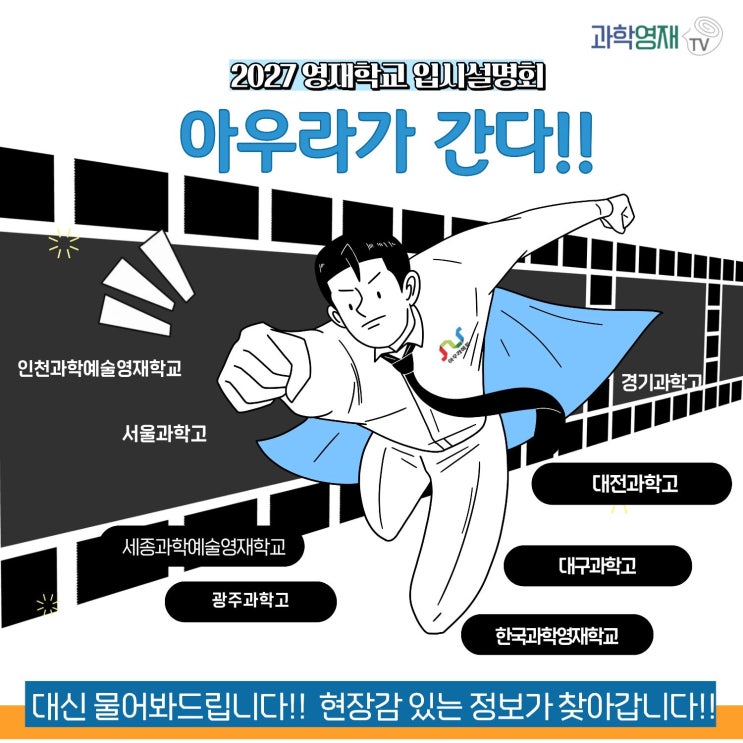 아우라에듀와 과학영재TV에서는 생동감 있는 입시정보 전달을 위해 새로운 코너를 마련했습니다. 일명 #아우라가간다#대신 물어봐드립니다!! 프로젝트입니다. 과학영재TV와 아우라에듀는 2027 영재학교 입학 설명회를 찾아가고 있습니다. 2027 바뀐 영재학교 입시 정보를 빠르고 정확하게 전달드리고, 각 학교별 관심 있는 학부모님들의 질문을 질의응답을 통해 학교 설명회 현장에서 직접 일대일로 문의하고 답변드릴 예정입니다. [아우라가간다_2탄] 서울과학고 2027 영재학교 입학설명회 지난 인과영에 이어 이번 주 토요일 4월 11일에 예정된 서울과학고 설명회가 두 번째 학교입니다. 입학설명회에 찾아가 학부모님들의 궁금한 점을 개별 질....... <img src="https://blogthumb.pstatic.net/MjAyNjA0MDdfMjA2/MDAxNzc1NTYyNjgzNDA5.5LFyOgYFuUcUd-SzpomfHyyn0_lFMWlUJmTNQJv4qKog.OuxKzYKzUXLuqLgy_396iiJNJI8AZIc0nK948wu08pMg.JPEG/%BE%C6%BF%EC%B6%F3%B0%A1%B0%A3%B4%D9_%B0%ED%C7%D8%BB%F3.jpg?type=s3" />