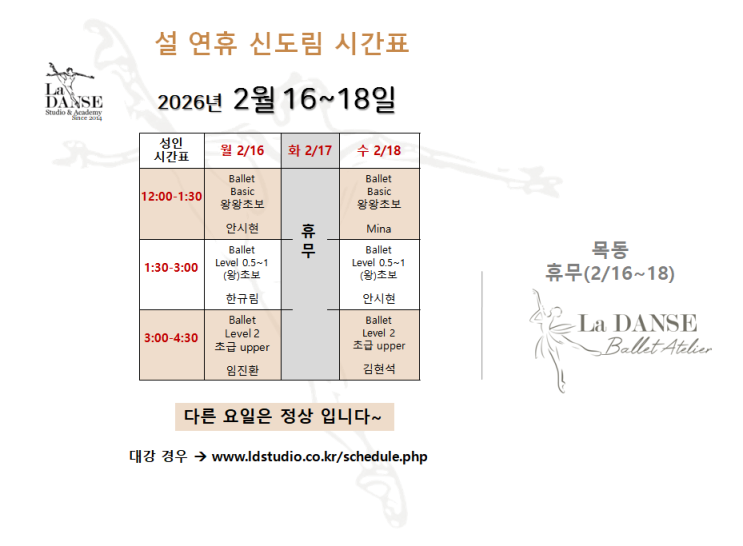 ▶대강 정보: http://ldstudio.co.kr/schedule.php <img src="https://blogthumb.pstatic.net/MjAyNjAyMDRfMjEy/MDAxNzcwMTc2NDU5MzIy.dN0i88ILFoX9kSkB-LDv4eA92kNAHiq1MoYV83eV30kg.V4-7oDGieY-3YYXJntwzOv3DO-t8Sil6HGAaYN8m8ecg.PNG/sul_sched.png?type=s3" />