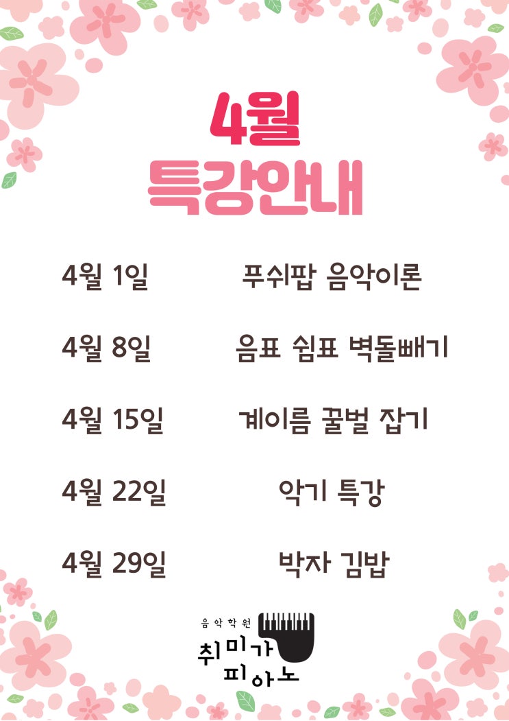 [기안동] 취미가 피아노 음악학원 4월 특강 안내