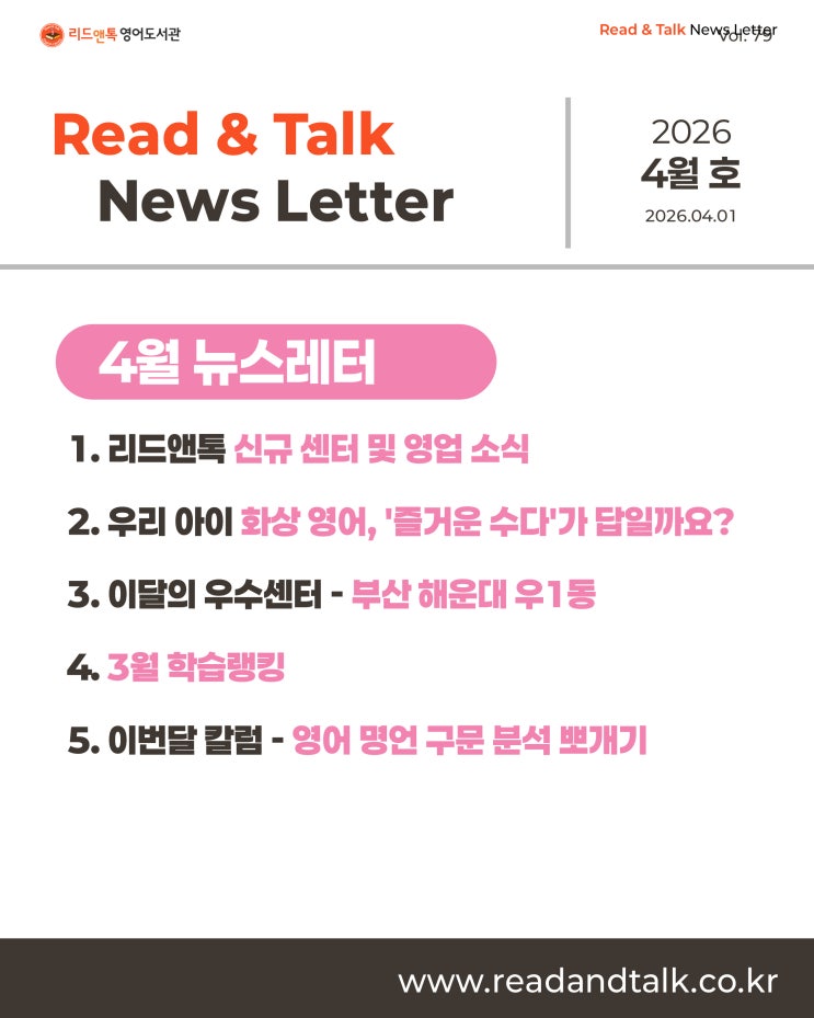 [봉담영어학원] 리드앤톡 4월 뉴스