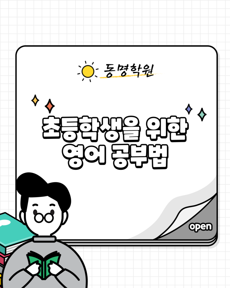 안녕하세요. 동명학원입니다. 오늘은 '초등학생을 위한 영어 공부법' 함께 알아보아요-! 01. 영어 단어 효율적으로 외우기 첫 번째, 듣고 발음하기 텍스트와 이미지, 소리의 조합은 장기기억으로 이어지게 된다 두 번째, 맥락 파악하기 단어가 포함된 문장을 활용하면 문맥 속에서 단어의 뜻을 자연스럽게 이해할 수 있다. 세 번째, 반복하기 단어장 하나를 최소 3회독 이상 보기를 바란다. 02. 소리내어 읽자 모든 언어 학습에서 중요한 것은 소리이다. 소리에 많이 노출될수록 언어를 익히는 속도가 빨라진다. 03. 나만의 영어 공부법을 찾자 비교적 시간의 여유가 있는 초등학생 때, 현재 영어 공부 습관을 살펴보고 수정, 보완해나....... <img src="https://blogthumb.pstatic.net/MjAyNjAzMzFfMTI0/MDAxNzc0OTQzNzIzODcy.FgPWyq9d9JY9_OjXGEa9GGMqzJ7E3mk4LkHlg6d9Y54g.lKOFAJ0XHL3hj_tFCnrbIRKtEFbS9qiLj_H30Ximya0g.PNG/001.png?type=s3" />