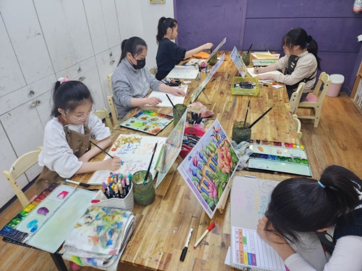 안녕하세요! 우리 아이들의 창의력이 빛나는 공간, 화명동 큰빛미술학원입니다. 따스한 햇살이 비치는 토요일, 우리 초등부 아이들은 평소보다 조금 더 특별한 수업을 진행했습니다. '캘리그라피 & 수채 일러스트' 수업입니다. 마음을 쓰는 시간, 캘리그라피 삐뚤빼뚤하지만 힘 있게 써 내려간 글씨체에서 아이들의 단단한 자존감과 순수한 마음이 느껴집니다. ️ 색으로 채우는 나만의 세계 글귀에 어울리는 상큼한 과일, 달콤한 케이크, 그리고 예쁜 꽃들을 수채화로 정성스럽게 그려 넣었습니다. 물 조절이 쉽지 않은 수채화지만, 집중해서 붓을 움직이는 아이들의 모습이 무척 대견합니다. 단순히 그림을 그리는 기술....... <img src="https://blogthumb.pstatic.net/MjAyNjA0MDRfNTAg/MDAxNzc1MzA5MzExMTMy.hTk8w4xo4hf7GbfkU5F4SjH_uChu9-JPI4RWsEJyyhIg.d-ZfEZZUK4QVL1Wy2ppaylevAS5yBtOVtdm_R-EpTy0g.JPEG/900%A3%DF20260404%A3%DF112058.jpg?type=s3" />