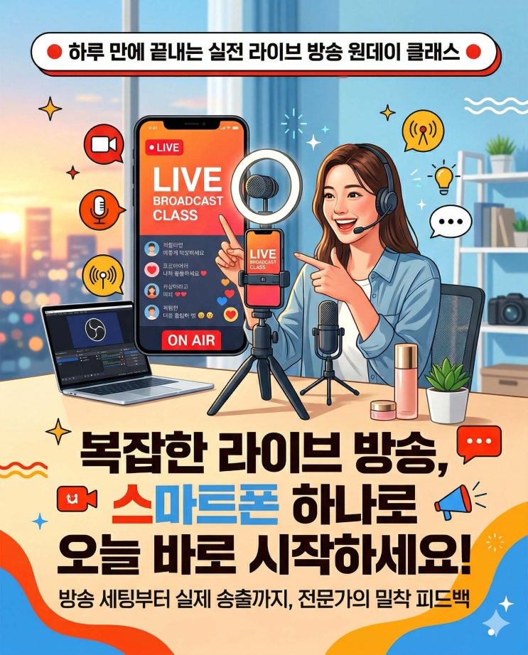 안녕하세요! 대구 남산역 인근에 위치한 유튜브영상학원입니다. 요즘 대세는 단연 '라이브 커머스'와 '실시간 소통 방송'이죠? 매출을 올리고 팬덤을 쌓기 위해 라이브 방송의 중요성은 알지만, 막상 시작하려고 하면 막막한 것이 사실입니다. "어떤 비싼 카메라를 사야 할까?" "복잡한 방송 프로그램은 어떻게 다루지?" "방송 중 사고가 나면 어쩌지?" 이런 고민 때문에 시작을 망설이셨다면, 오늘 유튜브영상학원에서 준비한 **'실전 라이브 방송 원데이 클래스'**에 주목해 주세요! 복잡한 장비 없이, 여러분이 매일 사용하는 스마트폰 하나만으로 전문가처럼 방송하는 노....... <img src="https://blogthumb.pstatic.net/MjAyNjA0MDNfMTI5/MDAxNzc1MTk5NjE2MjMz.Qnmtyw51tKUieGhuL8WP5nIYtJjZFS2oUA-Y5W99-VAg.C0MWB4hBVSbn4C0eYCI1guz84FSrdI-xxCmcN0p1n8Eg.JPEG/%B6%F3%C0%CC%BA%EA%B9%E6%BC%DB0404.jpg?type=s3" />