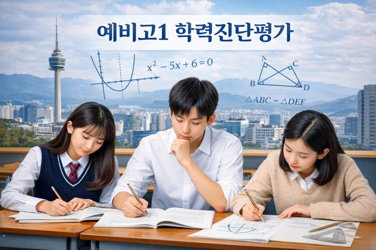예비고1 학력진단평가 안내 (대구광역시 주관) 곧 예비고1 학생들은 각 고등학교 예비소집 이후 **대구광역시 주관 ‘고등학교 입학예정자 학력진단평가’**를 치르게 됩니다. 이 평가는 단순한 형식적인 시험이 아니라, 고1 수업 출발선을 결정하는 중요한 기준 시험입니다. 1️⃣ 학력진단평가, 왜 치를까요? 이번 평가는 성적을 내기 위한 시험이 아닙니다. 고등학교에서는 이 평가를 통해 ✔ 학생 개인별 수학 기초 수준 진단 ✔ 고1 반 편성 및 수준별 수업 운영 ✔ 입학 초기 보충·심화 지도 대상 파악 을 목적으로 활용합니다. 즉, 고등 수학을 얼마나 ‘준비된 상태’로 들어오는지를 확인하는 시험입니다. 2️⃣ 시험 범....... <img src="https://blogthumb.pstatic.net/MjAyNjAyMDJfMzYg/MDAxNzcwMDMzMDg2OTE2.VbVD-i0TdK19tQjsqk0lJO38LV_6nJf6r3x0azW4f3Qg.-4L--xcQn5nOd8QpJufSnDw7Dn8xQkfcCYWmMZEdjyAg.PNG/%BF%B9%BA%F1%B0%ED1_%C7%D0%B7%C2%C1%F8%B4%DC%C6%F2%B0%A1.png?type=s3" />