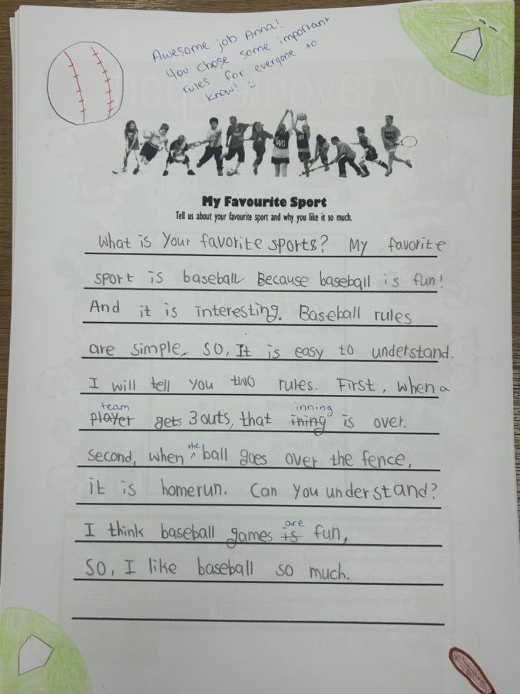 안녕하세요 수성마스터클럽입니다 ! 드디어 2026년 새해가 밝았는데요 ☀️☀️ 2026년 첫 mc day 주제는 바로바로 <My favorite sports>였습니다! 곧 개막을 앞두고 있는 야구가 아이들에게 가장 인기가 많은 스포츠였고 왜 그 스포츠를 좋아하는지에 대해서도 적어보는 시간을 가졌답니다 !! ⚾⚾ 또한 다양한 스포츠의 명칭들도 익혀보았답니다 ! Q : What is your favorite sport? A : My favorite sport is baseball. Q : What subject do you like? A : I like English the best. ⭐⭐⭐ 더구나 2022년 개정 중학1학년 교과서 대화문에서에서도 이런 표현들이 많이 나와있는만큼 중요한 표현들이었습니다 ⭐⭐⭐ 각 레벨에 맞게 워크....... <img src="https://blogthumb.pstatic.net/MjAyNjAxMjlfMTY0/MDAxNzY5NjYxOTY3MTAz.iSnhqkHtXbodIFI8dSuC_gFyxywS-J5DBaMF1UEisS8g.MP2ooOrcedN1AhkTprWk5GOF0UJJ4cOf9y3WKnxtayMg.JPEG/IMG%A3%DF3566.jpg?type=s3" />