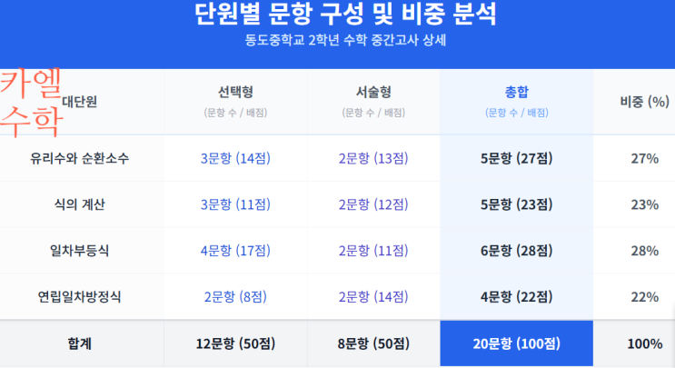 대구 동도중학교 25년도 2학년 1학기 중간고사 기출분석-BY 수성구 범어동 수학교습소 카엘