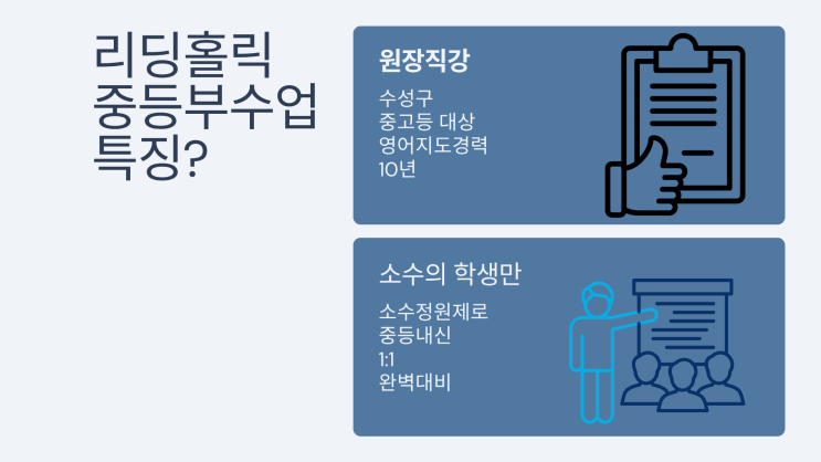 안녕하세요^* 대구 수성구 지역 중학생들을 대상으로 10년 넘게 수업을 해오고 있는 Lisa 원장입니다. ♥♥♥ 오늘은 리딩홀릭영어학원만의 중등부 영어 내신대비 전략을 소개하려고 합니다. 0. 영어교과의 중요성 1. 대구수성구지역 중학교 내신은 이렇게 변하고 있습니다. 논술형 평가 및 영작이 강화된 평가 방식의 변화는 리딩홀릭영어학원 학생들의 강점을 보여줄 수 있는 기회가 되었어요. 2. 리딩홀릭영어학원의 New 입시 맞춤 수업전략 원서 읽기 수업을 꾸준히 해온 리딩홀릭영어학원 중등부 학생들에게는 중등 내신 독해는 어렵지 않게 해결할 수 있습니다. 매 수업마다 진행해온 영어글쓰기는 서술형 시험에 안성맞춤! 3.리딩홀릭영어....... <img src="https://blogthumb.pstatic.net/MjAyNjAzMjRfMTQx/MDAxNzc0MzU2ODgzMTQw.AsgDWA9OjBD2DTvv5qGRNWFwM_ZqcDUCDSw65rTqmi0g.FKfJ9hWfr0OrDOx2FUYFG1siyWtffhiszS8JPM43qR8g.PNG/11.png?type=s3" />