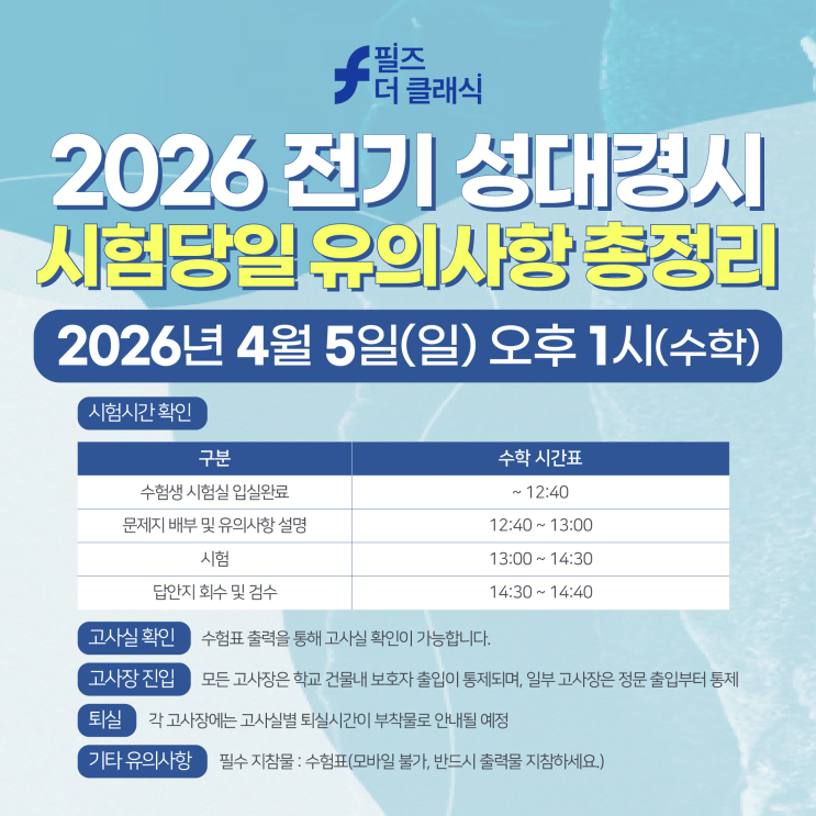 필즈더클래식대구 2026 전기 성대경시 시험당일 유의사항 총정리