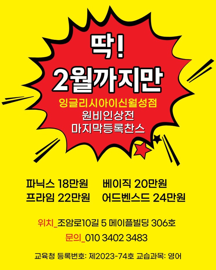 [잉글리시아이 신월성점] 학부모님, 딱 2월까지만 이 가격입니다