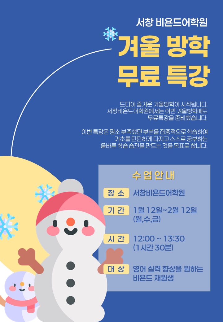 방학 무료특강으로 더 탄탄하고, 더 내실 있게
