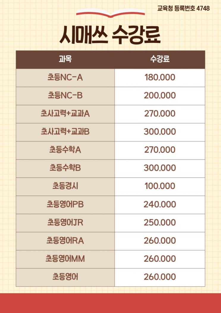 ■ 시매쓰&씨엠플러스 학원 수강료 안내표