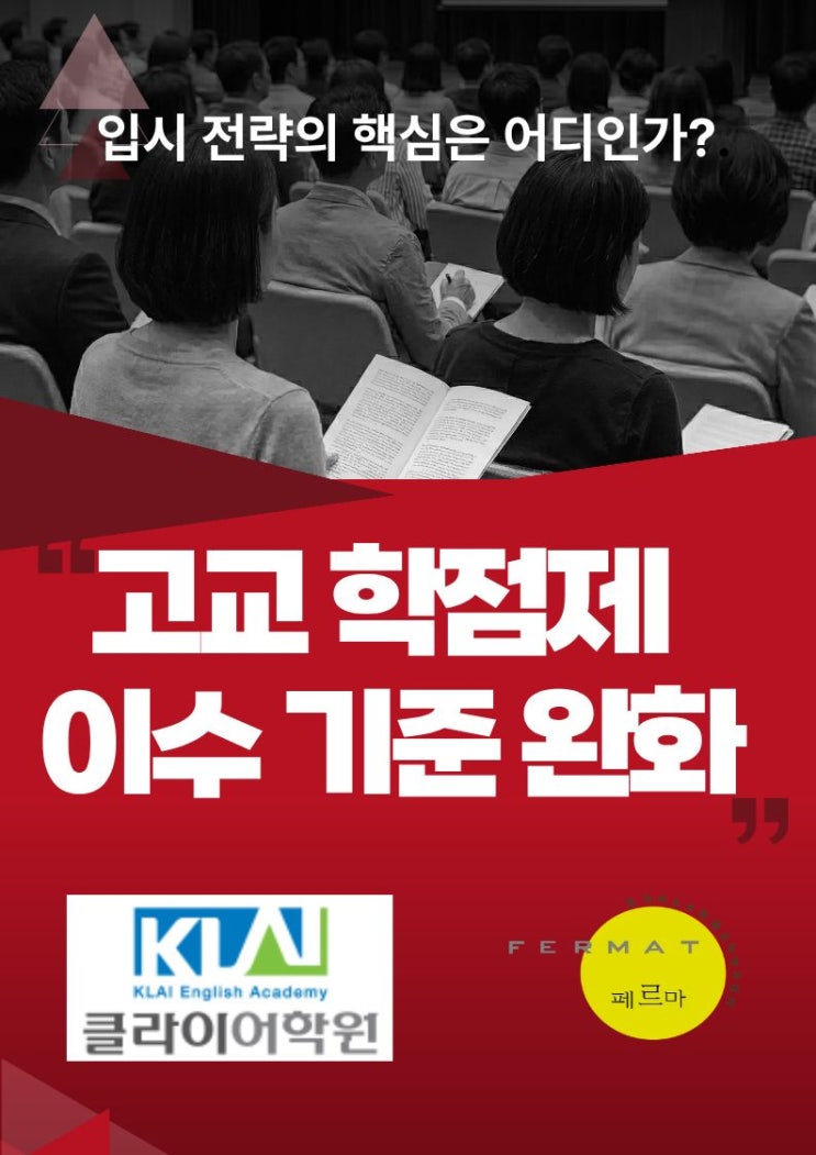 고교학점제 이수 기준 완화, 입시 전략의 핵심은 어디인가? 2025학년도부터 적용되는 고교학점제의 이수 기준 완화는 고등학교 교육 현장에 구조적인 변화를 예고하고 있습니다. 단순히 '졸업이 쉬워졌다'는 인식을 넘어서, 상위권 대학 입시를 준비하는 학생과 학부모는 변화된 제도 속에서 어디에서 변별력을 확보할 것인가에 대한 전략적 판단이 더욱 중요해졌습니다. 입시 전략의 리셋: 변별력 확보는 어디서? 1. 공통과목 내신, 입시의 결정판 선택과목에서 변별력이 희미해진 만큼, 고1 공통과목(국어, 영어, 수학 등)은 대학 입시에서 핵심 지표가 됩니다. 이는 입시에서 객관적인 정량 평가가 가능한 유일한 영역으로, 대학은....... <img src="https://blogthumb.pstatic.net/MjAyNjAxMTlfMTc4/MDAxNzY4ODIyMjc5Njkz.T2LdI88yj1Shgbe8SdFj4G7OAeT2P3gxlpDGYrtXckcg.1SsMwdVwKZGcZA5oc88Elm_lG_jiKMld7YDS-8uHr5Qg.JPEG/%C1%A6%B8%F1%C0%BB_%C0%D4%B7%C2%C7%D8%C1%D6%BC%BC%BF%E4._%282%29.jpg?type=s3" />
