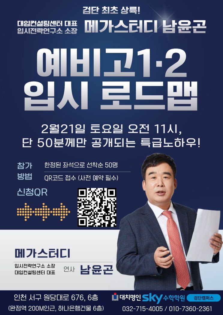 검단 수학학원 설명회|예비고1·2 학부모를 위한 ‘입시 로드맵 특강’(메가스터디 남윤곤 소장 초청)