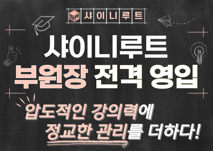 안녕하십니까! 광주 남구 진월동 샤이니루트 수학전문학원입니다. 저희 샤이니루트를 믿고 아이들을 맡겨주시는 학부모님들의 성원에 힘입어, 실력과 인성을 모두 갖춘 귀한 분을 부원장님으로 모시게 되었습니다. 부원장님을 소개해 드리며, 앞으로 샤이니루트가 나아갈 더 견고해진 교육 시스템을 말씀드리고자 합니다. 250명 대형학원 '수학 대표강사'의 검증된 실력 이번에 영입된 부원장님은 250명 규모의 대형학원에서 수학 대표강사로 10년 이상 활동하며 수많은 학생의 실력을 끌어올린 베테랑입니다. 강의력은 기본입니다. 대형 교육기관에서 인정받은 체계적인 지도법과 풍부한 데이터를 바탕으로, 우리 아이들에게 '차....... <img src="https://blogthumb.pstatic.net/MjAyNTEyMzBfMTY5/MDAxNzY3MDkzMTE2Njgw.n_YE6djPSK6lovDW6c4nAaJ7qExFlEs2msw1OigV-Pcg.mul2mBrD9HVwfoPtM3CeJLSh5-8G3-AcgpxLduUYhT0g.PNG/002.png?type=s3" />