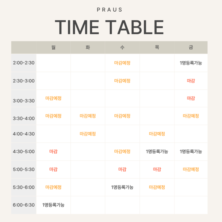 안녕하세요 수완지구 흑석동에 위치한 피아노학원, 프라우스 음악학원 입니다 :) 결과보다 성장의 과정이 더 중요하다고 믿는 곳, 아이 한 명 한 명의 속도와 마음을 존중하는 관리형 프라이빗 피아노 클래스 프라우스 음악학원은 질 높은 교육을 위해 시간정원제로 운영되고 있습니다. 현재 등록 가능 타임 안내드립니다. 마감된 타임은 신규등록이 어려운 점 양해부탁드리며 잔여타임은 선착순으로 마감됩니다. 스케줄 변동이 있을시 약간의 조정 가능하므로 편하게 문의주세요^^ *성인반이나 개인레슨의 경우 별도의 시간표로 운영됩니다. 프라우스 방문상담은 아이들의 수업권 보장을 위해 예약제로 이루어지고 있습니다 <상담문의 및....... <img src="https://blogthumb.pstatic.net/MjAyNjAzMjJfMTY3/MDAxNzc0MTM1NzkxNzc1.Cc-jY4yMRjNrQ6JA_jHGW_x1beAO2SRJEkMf5g0ZXncg.-sNhxxWX9urA5Uz-jIXym59BQKtMuhrNaSK4UblBYHgg.PNG/IMG%A3%DF0009.PNG?type=s3" />