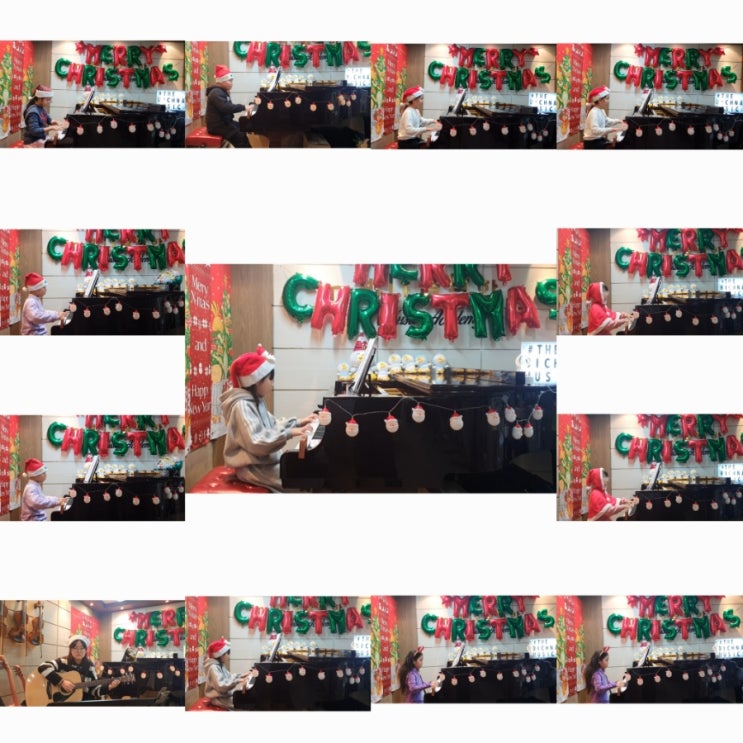안녕하세요!~^^ 기쁜 성탄 크리스마스를 맞아 더 빛나음악학원에서는 여러가지 이벤트를 준비 했답니다 먼저, 크리스마스하면 캐롤이 빠질 수 없죠!. . 더 빛나친구들 각자 수준에 맞게 캐롤곡을 골라 피아노, 바이올린, 기타, 칼림바로 멋진 연주를 했답니다 ❣️열심히 연습했는데 저희들 연주 어때요~;;;; 그리고 크리스마스 리스를 예쁘게 꾸며서 그 안에 나의 얼굴을 함께 넣으니 더 멋진 리스가 되었어요 집에 장식하면 예쁘겠죠!☺️ 크리스마스 트리도 꾸며서 인증샷을 남겼어요 음악워크지도 했어요~^^ 다음날은 고소한 팝콘을 먹으며~ 재미있는 영화관람도 했답니다 영화볼땐 역시 팝콘이죠! 또 있어....... <img src="https://blogthumb.pstatic.net/MjAyNjAxMTFfMjY3/MDAxNzY4MTM5MTEyNDc4.wMkJ_SGhKrAj53JtdlcK8IBTX8HPZuNhVihbwOfgyecg.ielbgnOroLIZbLVk1iokqW4sZ3WWGw5wAZJcgPT39ZUg.JPEG/900%A3%DFInCollage%A3%DF20260104%A3%DF153126374.jpg?type=s3" />