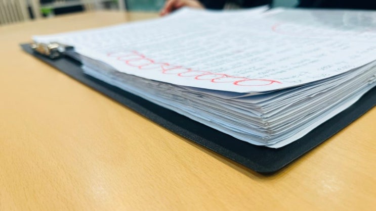 랑제이 영어학원에 처음 자녀를 보내시는 학부모님들 중 가끔 이렇게 묻는 분들이 있습니다. "교재는 따로 없나요?" 랑제이에슨 한 권으로 제본 된 교재는 없습니다. 대신 매 수업 배부되는 교재는 있습니다. 아이들이 배부받고 공부한 교재를 쌓아가는 구조입니다. 한두 달이 쌓이면 꽤 묵직한 교재뭉치가 됩니다. 그런데 그 교재는 보통 교재가 아닙니다. 깔끔 한 제본 교재는 아니지만 우리 학생들의 필요와 수준을 고려한 내용들이 담겨 있고 아이들의 필기 흔적과 지운 자국, 다시 고친 문장들이 그대로 남아 있습니다. 그렇게 씨름한 흔적이 그대로 남아 있는게 랑제이 영어학원 교재입니다. 그럼 왜 교재를 제본해서 배부 혹은....... <img src="https://blogthumb.pstatic.net/MjAyNjAxMDdfMjkz/MDAxNzY3NzkzNjA0NDQ4.NjkC4neEiFgkwWJYwzyxJIT1O6FRkSU3QSWIj2oXW0Mg.0X4IKz6gLqBQsa5AhOXezPjhRmDnD7UEsImduYnZhq4g.JPEG/4C893B82-0D4F-463F-8853-349602E188AD_1_102_a.jpeg?type=s3" />
