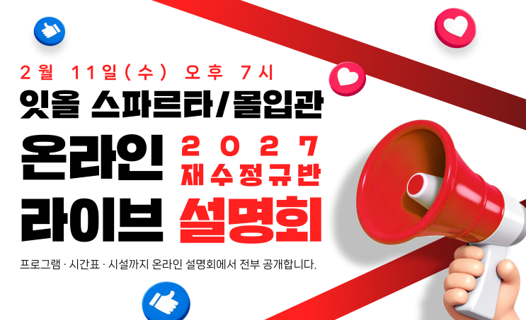 최근 ‘불수능’ 여파와 함께 대학 합격자 발표 일정이 연이어 진행되면서 재수를 결심하는 수험생이 늘고 있다. 이러한 흐름 속에서 독학재수학원에 대한 수요와 관심 역시 자연적으로 확대되고 있다. 이에 독학재수학원 대표 브랜드 잇올이 오는 2월 11일(수) 오후 7시, 잇올 스파르타·몰입관 2027 재수정규반 온라인 라이브 설명회를 개최한다고 밝혔다. 앞서 1월 28일(수) 진행된 잇올 기숙학원 온라인 라이브 설명회는 사전 신청 단계부터 높은 관심을 모았으며, 설명회 당일에도 많은 참여자가 몰렸다. 잇올 기숙학원의 몰입 학습 시스템과 관리 방식, 2027 재수정규반 프로그램을 중심으로 한 설명 이후 진행된 질의응답 시간에는 질문이....... <img src="https://blogthumb.pstatic.net/MjAyNjAyMDRfMjIz/MDAxNzcwMTY5OTYyNzA5.VXsaCfGejWrX3N65g-k_H5Akrdq14LMMW853z8mZLM4g.yY4eUhQ9QqPmAX3oJL4mb3tlmfaDAZa70zyfgGKwO5Ag.PNG/image.png?type=s3" />