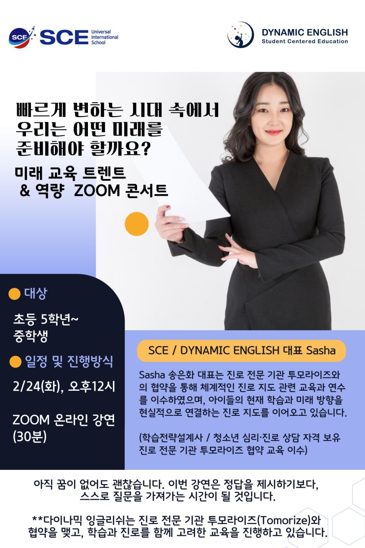 [다이나믹 잉글리쉬] 초5~중학생 대상 미래 교육 트렌드 & 역량 콘서트 ZOOM 강연 안내