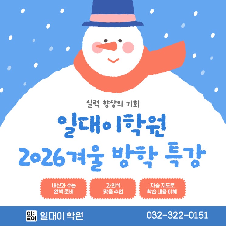 [상동 일대이학원] 2026년 겨울방학 특강 안내