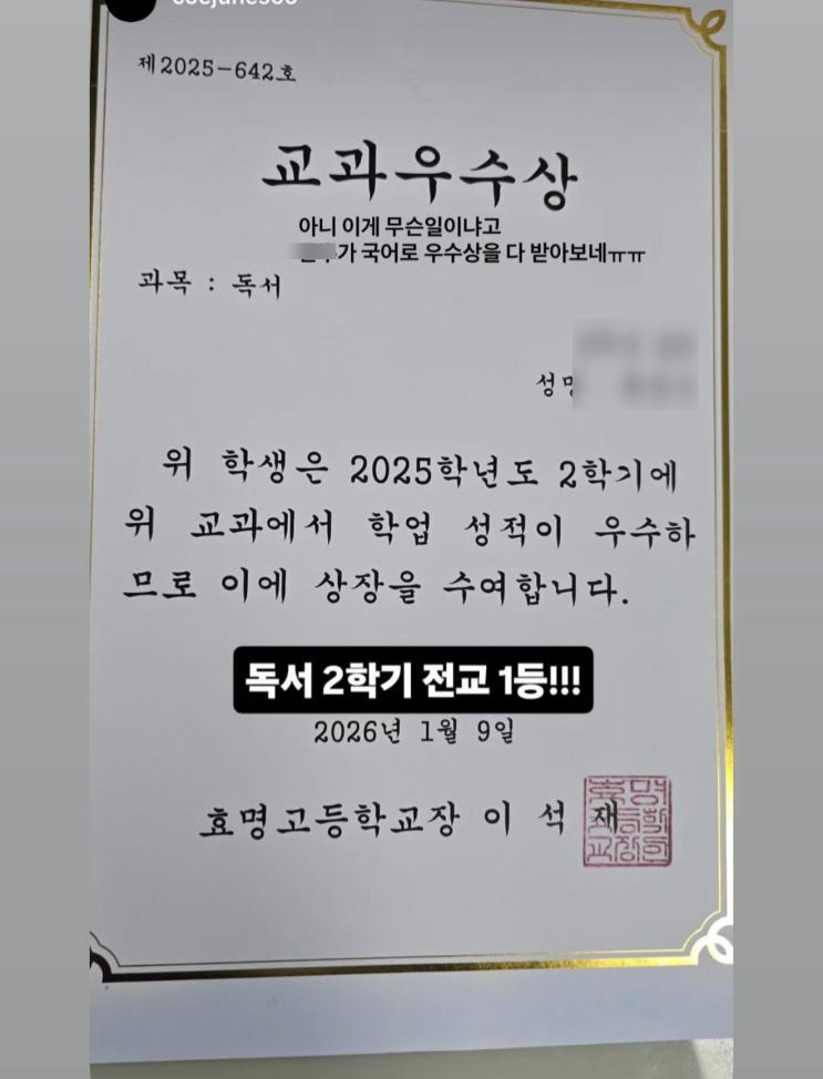 효명고 2학년 2학기 국어 전교 1등!