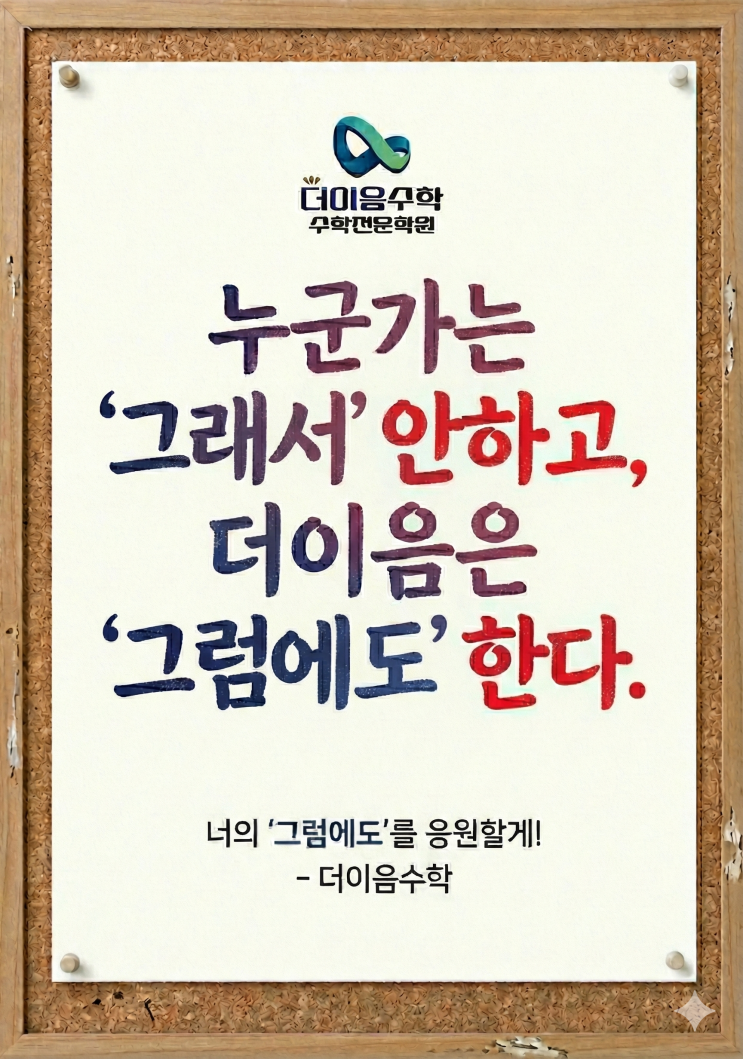 안녕하세요, 아이들의 마음과 실력을 잇는 더이음수학입니다. 가장 춥지만 가장 뜨겁게 성장해야 할 겨울방학을 앞두고, 학부모님과 학생들의 계획에 도움이 되고자 전체 시간표와 고등부 특강 소식을 정리해 드립니다. 2026 겨울방학 전체 시간표 이번 겨울방학 동안 더이음수학은 초등부부터 고등부까지 아이들의 학습 리듬이 깨지지 않도록 빈틈없는 시간표를 구성했습니다. PART 2. 고등부 전용: 7주 몰입 맞춤 특강 안내 이번 겨울방학 특강은 오직 고등학생만을 대상으로, 실질적인 등급 상승과 완벽한 개념 정립을 목표로 합니다. 7주라는 시간 동안 우리는 '안 하는' 이유 대신 '그럼에도 불구하고' 해내....... <img src="https://blogthumb.pstatic.net/MjAyNjAxMDlfNzgg/MDAxNzY3OTU0NTgzNjg5.W-MiBGKGR0w1hRCcGENx2OYYIH-mLxC64a3_YP5KmB4g.eotQAl2SwTcxCofHTR4tyEj1upNLbgjdUikVfNvv-AQg.PNG/%B1%D7%B7%B3%BF%A1%B5%B5.png?type=s3" />