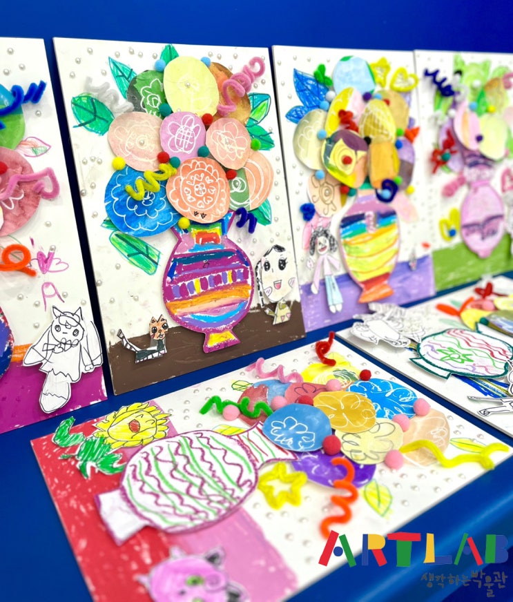 안녕하세요! 생각하는 박물관 아트랩입니다 3월의 주제는 <봄 꽃>이었어요. 지난시간의 에바 알머슨 따라잡기에 이어서 이번 시간에는 봄 꽃이 가득 담긴 화병을 만들어주었답니다. ▼지난 시간의 커리큘럼이 궁금하시다면?▼ https://blog.naver.com/thinkmuseum_artlab/224235809213 랩둥이들의 개성이 가득 담긴 <봄 꽃꽂이>! 어떻게 완성되었는지 함께 감상해보실까요? 작업 과정 먼저 원하는 모양대로 화병을 그려주었어요^^ 랩둥이들은 어떤 색을 가장 좋아해? 좋아하는 색을 가득 담아서 개성넘치는 화병을 그려주자! 이번에는 배수성의 원리를 활용한 배틱 기법을 활용해서 꽃을 그려주었어요! 예쁜 물감 속에서 드러나는 꽃....... <img src="https://blogthumb.pstatic.net/MjAyNjA0MDJfMjYw/MDAxNzc1MTEwNDkxMDYz.a3VVkdzmfQ94wCl0Fm9frjM1L-86tfNGm_G_aq361vIg.UMDn55d-aDczu9aeBsj-pY47M7gtGLSiGZ5XeP4HLIAg.JPEG/KakaoTalk_20260402_140315776_06.jpg?type=s3" />