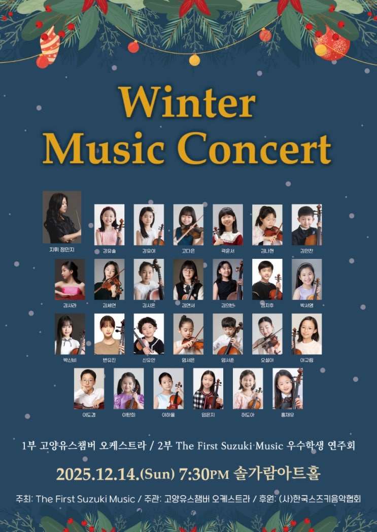 1부: 고양유스챔버오케스트라 2부: 더퍼스트스즈키 우수학생연주회 프로그램으로 솔가람아트홀에서 연주회가 열렸습니다 아이들의 시간과 노력이 멋진 무대를 만들어냈고 서로 배려하며 연주하는 모습이 아름다웠습니다. 응원해 주신 부모님들 덕분에 아이들과 선생님들이 함께 최선을 다할 수 있었던 소중한 시간이였습니다 앞으로도 선생님, 부모님, 학생이 3박자를 맞추어 평생 아름다운 하모니를 즐길 줄 아는 멋진 아이들로 상장할 수 있도록 최선을 다하겠습니다 영혼과 열정을 다 쏟아부은 우리 선생님들께 박수를 보냅니다 사랑합니다♥️ 음악 전인교육을 실천합니다 ☎️010-7342-7072 더퍼스트스즈키 바이올린&첼로 전....... <img src="https://blogthumb.pstatic.net/MjAyNTEyMjVfMjYx/MDAxNzY2NjcwNzg5ODg4.NeKWRNRUGIJqBlW-qEqmaDMzvuS47C20lKmPLSy3hYgg.ER1VrhVcu1ecyMcaJhw-UAzkcOk1WgcB0sJMHEDEw84g.JPEG/900%A3%DF1764136965238.jpg?type=s3" />