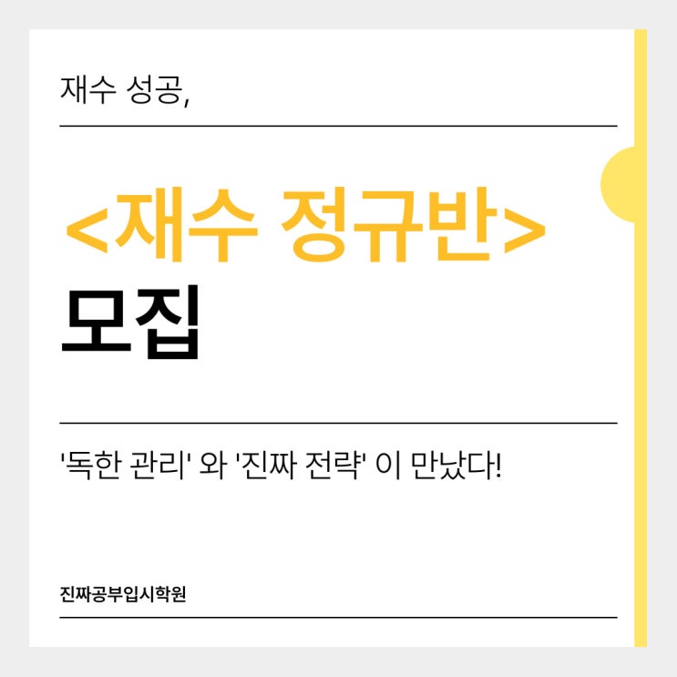 [일산재수학원]재수 성공, '독한 관리'와 '진짜 전략'이 만났다! 일산 진짜공부입시학원 <재수정규반> 모집