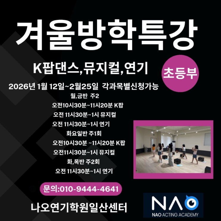 일산연기학원[나오연기학원]초등부 겨울방학특강 뮤지컬.K팝