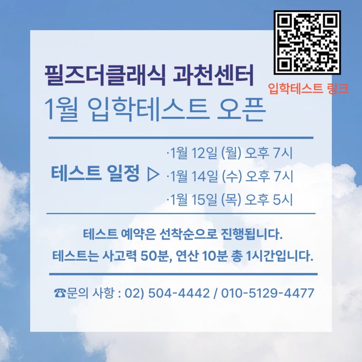 1월 입학테스트 예약 오픈