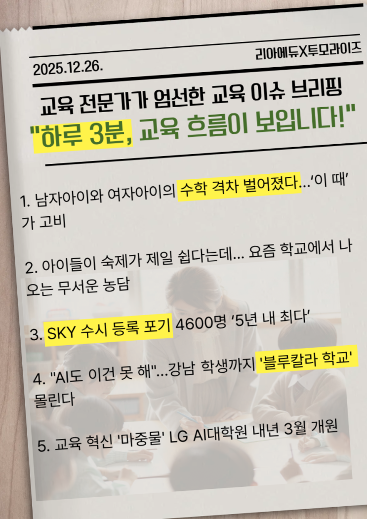 [미사국어영어] 리아에듀 교육 뉴스 브리핑(25.12.26.)