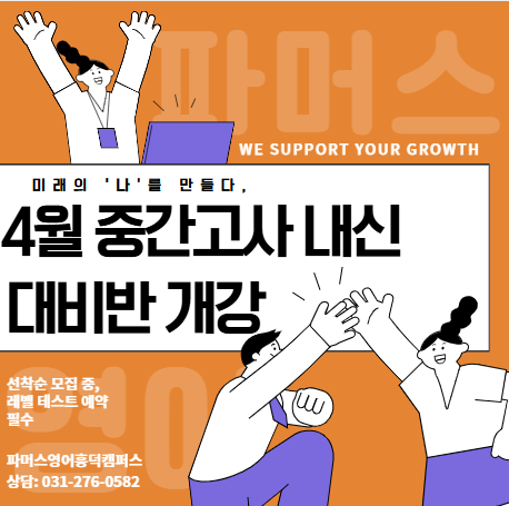 4월 중등, 고등 중간고사 내신대비반 개강[영덕동.광교영어학원]