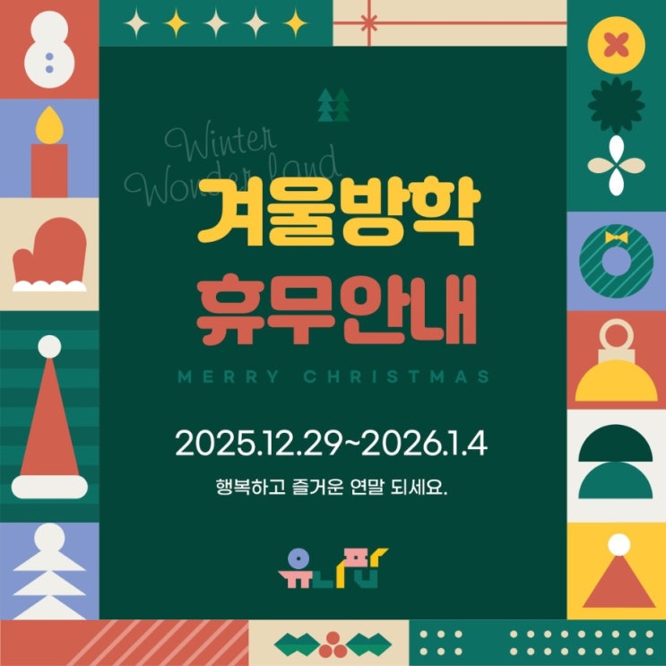 즐거운 연말연시 보내시고 새해 복 많이 받으세요♡ 12/29일 월요일에 보강수업만 진행됩니다. 유니팝마북센터미술교습소 제2555호 #용인구성아동미술 #마북동미술 #방학 #구성초 #교동초 #마북초 #구성중 #NCCS #구성초병설유치원 #바나유치원 #푸른유치원 #유니팝마북센터미술교습소 <img src="https://blogthumb.pstatic.net/MjAyNTEyMjZfNTgg/MDAxNzY2NzExMTAzNjA4.yksppZx5q2uiE-cTVxaDfomu0i0yH5KL9UXLIlY79jog.4cg1lNBPYiIs3KwbldpE7p573TfR0VnQipZSqK-VaLYg.JPEG/900%A3%DF1764815415956.jpg?type=s3" />