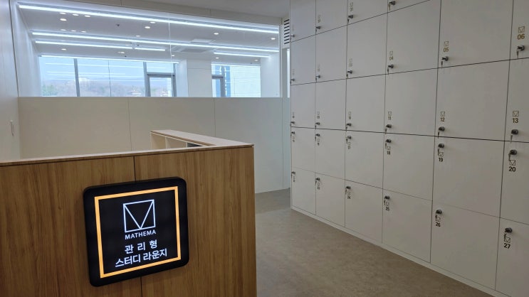 안녕하세요^^ 마테마 관리형 스터디 라운지입니다. "칙칙하고 어두운 독서실"은 졸음만 부릅니다. 마테마 관리형 스터디 라운지는 화이트와 우드톤의 조화로 뇌의 피로도를 낮추고 마음의 안정을 주는 인테리어로 설계하였습니다. 사물함에 학생들의 개인 소지품이나 가방 옷 등을 보관할 수 있습니다. 퇴실 때 열쇠는 데스크에 맡겨두시면 되고 언제든 사용 가능합니다. 저희 마테마 관리형 스터디 라운지는 서랍장과 좌석에 붙어 있는 수납공간을 없앴습니다. 서랍장은 시각적 '짐'이 되어 학생들의 집중력을 분산 시킵니다. 학생들이 공부하는 책상에 온전히 텍스트에만 집중하게 하려 시야를 분산 시키는 요소를 최소화....... <img src="https://blogthumb.pstatic.net/MjAyNjAzMjZfODUg/MDAxNzc0NTExNTc4NTMz.MqMqUVL4F1iMAkRK1uUEJye52w5dck25bGKFxE7DK1Eg.Ee9KEH-B0ijDXH9Q6rpb-BTu6Km9kZoWAgaKupYJ1Mcg.JPEG/KakaoTalk_20260325_230951328_03.jpg?type=s3" />