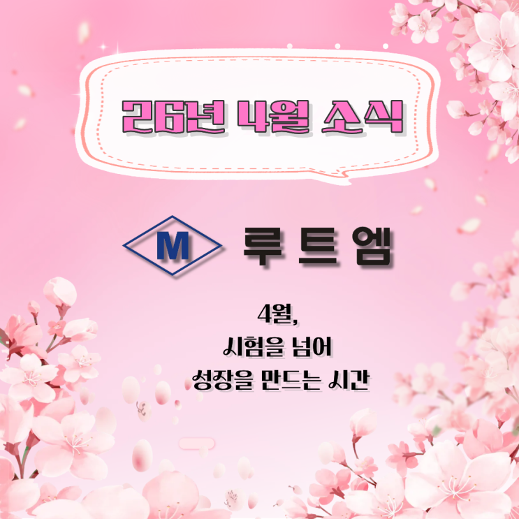 2026년 4월 루트엠 학원 일정 안내 안녕하세요 루트엠 학부모님들께 4월 학원 일정을 안내드립니다. 4월은 초등부터 고등까지 모든 학생들이 시험을 준비하는 중요한 시기입니다. 아이들도 많이 힘든 시기인 만큼 가정에서도 따뜻한 격려와 응원 부탁드립니다. 4월 주요 일정 안내 초·중·고 시험 대비 시작 4월부터 전 학년 시험 대비가 본격적으로 시작됩니다. 학원에서는 학교별 진도와 시험 범위에 맞춰 체계적으로 대비를 진행합니다. 초등 미래엔 전국 중간고사 4월 23일(목) ~ 24일(금) 초등부 학생들은 전국 단위 시험을 통해 현재 학습 상태를 점검하게 됩니다. 시험 결과를 바탕으로 부족한 부분을 보완하고 이후 학....... <img src="https://blogthumb.pstatic.net/MjAyNjAzMzFfNTUg/MDAxNzc0ODk2MzI5MzIz.NBswi6hlGQtssFGdPCPDijqi4Q64gfkvXw1NW12K7UAg.job_rvbKXFJoegzv5g4sQpWDjmnBIdXHMV5bBeqkG2kg.PNG/%C7%A5%C1%F6.png?type=s3" />