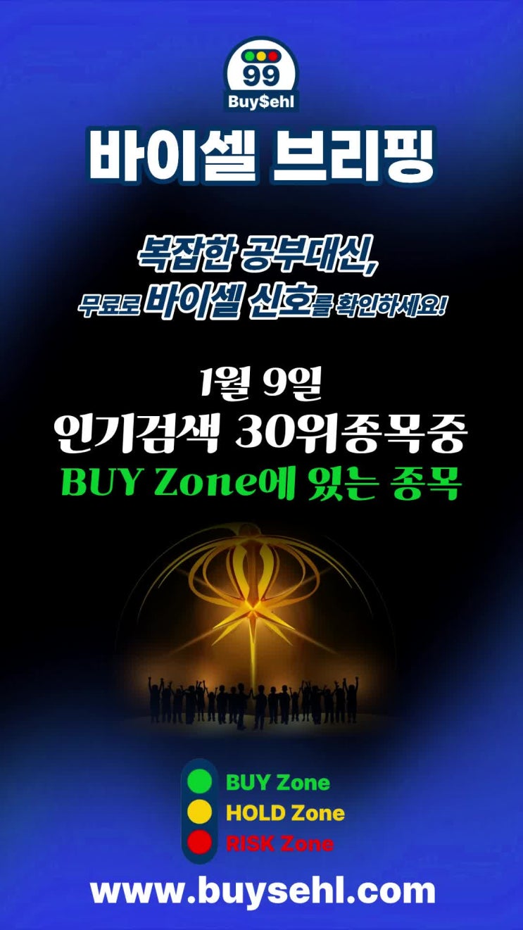 바이셀로 1월 9일 인기검색상위 30개 종목을 분석하면 몇개의 종목이 BUY Zone에 있을까요?